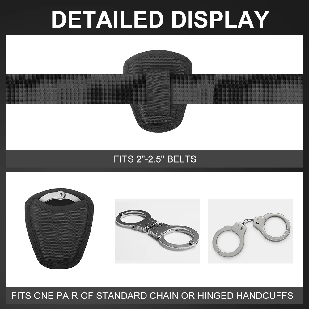 Adecuado para cinturones de servicio de hasta 2,5 pulgadas de ancho.De tamaño compacto y no ocupa demasiado espacio en el cinturón.