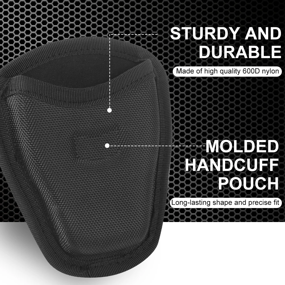 La bolsa para esposas puede acomodar un juego de esposas de tamaño estándar.La mayoría de las esposas de cadena y bisagra pueden encajar perfectamente en el estuche.