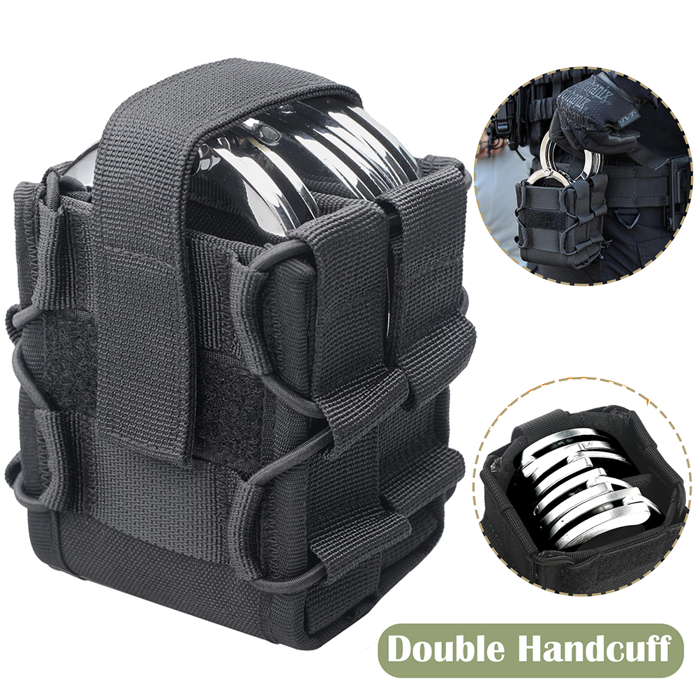 Funda táctica Molle para esposas dobles, esposas rígidas plegables, soporte para puños de aplicación de la ley, bolsa para esposas al aire libre para cinturón de servicio